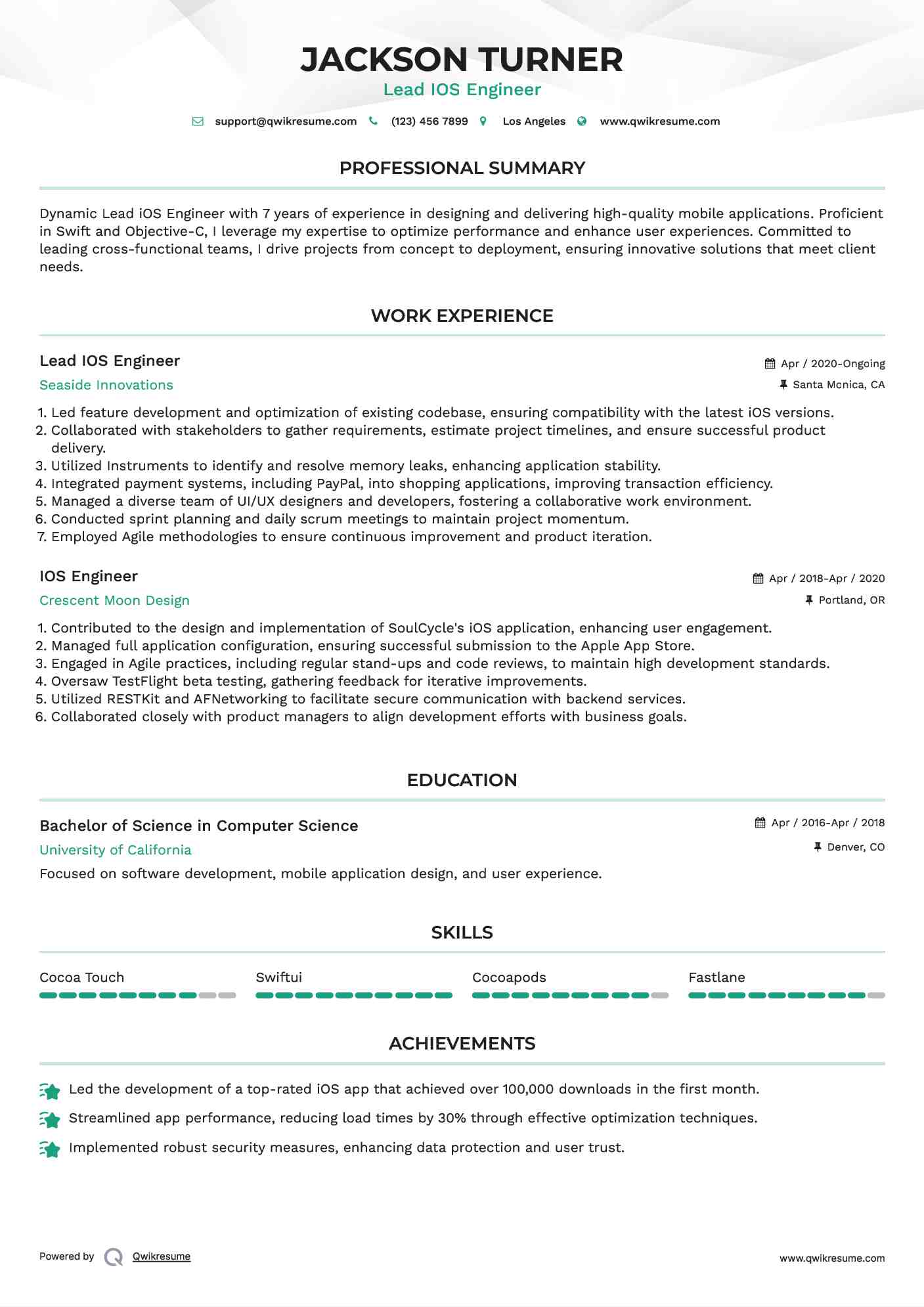 Ios Engineer Resume Samples Qwikresume